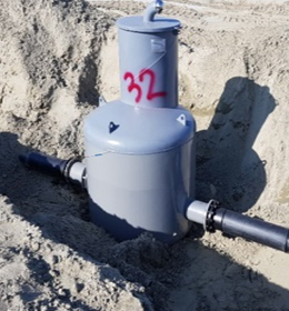 - 관내 이물질을 배출하는 기능을 가지며, “유입관 / 밸브실 / 이물질실 / 토출관”이 일체로 되어있어 한번에 시공이 가능하기에 공사기간을 단축할 수 있음